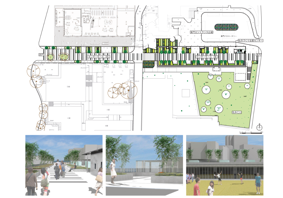 長野県立大学三輪キャンパス整備 長野県短期大学を4年制大学に転用するにあたり、「街のようにキャンパスをつくり、キャンパスのように街を使う」というコンセプトのもと「リビングラボラトリー」を提案 |